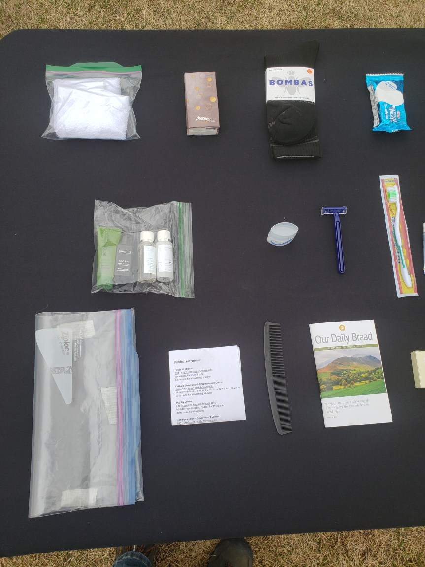 Richard Bahr, an advocate for the Twin Cities homeless community, organized a small group of people to meet in his driveway on April 6 to pack 100 personal care kits. These kits were distributed to the area homeless community.